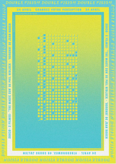 is offered in a monthly program that takes radical, transformative and visionary works of cinema and pairs them with their mirror selves. Featuring critical essays, curated film / video programs, visiting international filmmakers and focusing on films drawn from the rich and complicated histor/ies of visual anthropology and experimental cinema, DOUBLE VISION looks to draw an emotional, political, visceral and critical line of influence between what is felt, what is seen, what is known and what can be understood.